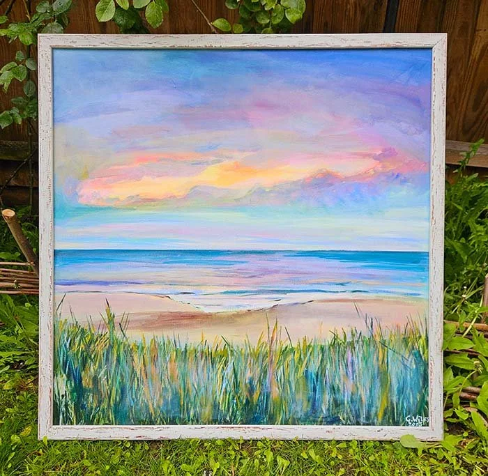 Original acrylic painting on a 50 cm x 75 cm deep edged canvas. Framed in gold.